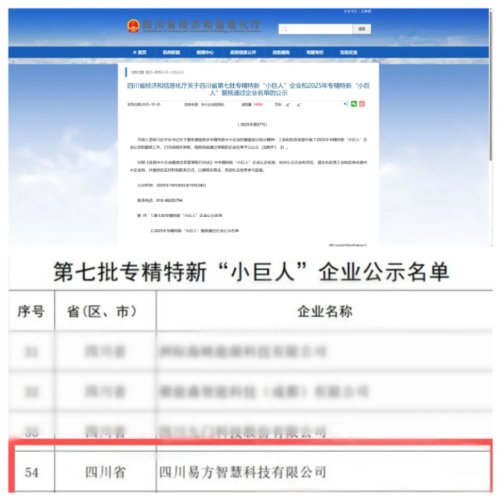近日,根据四川省经济和信息化厅《关于四川省第七批专精特新“小巨人”企业和2025年专精特新“小巨人”复核通过企业名单的公示》(2025年第57号)同花配资,四川易方智慧科技有限公司凭借在三维数字技术与人工智能融合应用领域的卓越深耕,成功入选国家级专精特新“小巨人”企业名单。